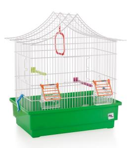 Se entrega con palos y columpio. Parrilla suelta en la base de la cubeta. Dos puertas (lateral y frontal). Tamaño medio. Con capacidad de 2 a 4 pájaros.