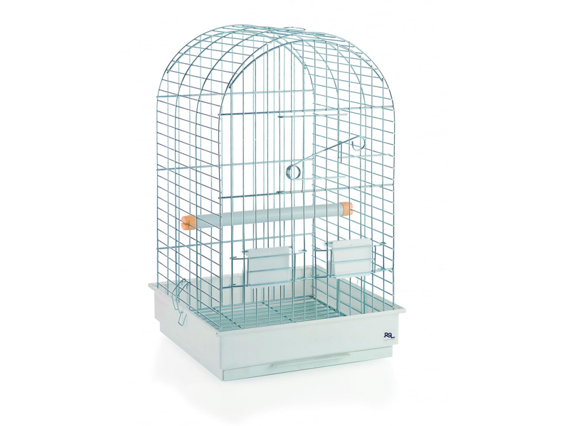 La jaula está fabricada en metal con los barrotes pintados con pintura epoxi libre de plomo. Los accesorios son de plástico.