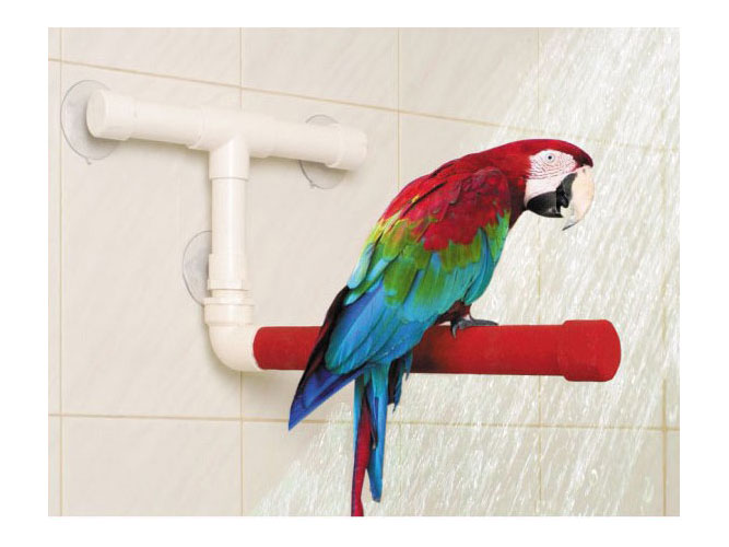 La primera percha de ducha especial para loros. Elaborada con el recubrimiento especial de pedicura de Sundy Perch.