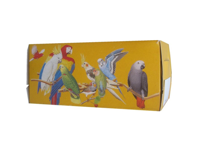 Cajita transportin de cartón para transportar al pájaro en distancias cortas.